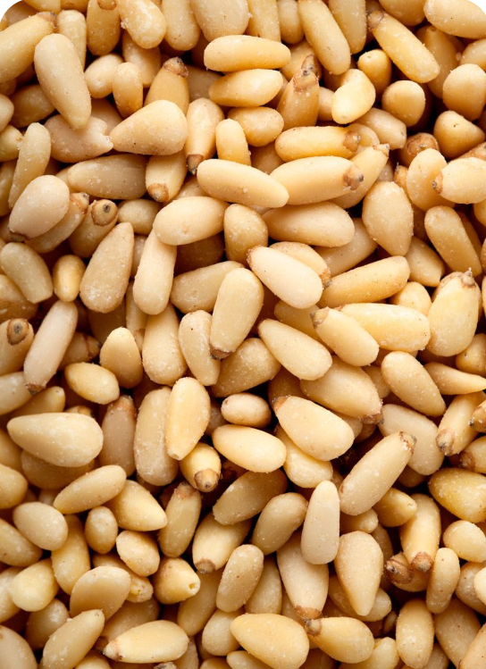 Pine nuts are small, creamy-colored seeds obtained from certain species of pine trees. They are prized for their delicate, buttery flavor and rich nutritional value. High in healthy fats, protein, vitamins, and minerals, pine nuts are a versatile ingredient widely used in salads, pesto, baked goods, and snacks. Whether eaten raw or roasted, they offer a luxurious texture and nutty taste, making them a favorite in gourmet cooking.